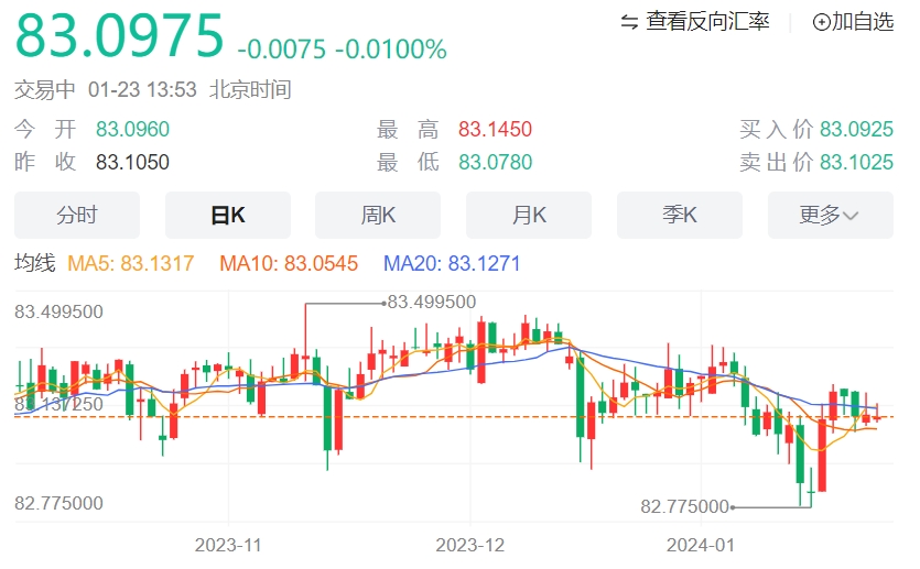 印度卢比当日走弱。美元/印度卢比仍停留在82.80-83.40的数月交易区间内。美元/印度卢比保持在日线图上关键的100周期指数移动平均线(EMA)上方。然而,由于 14 天相对强弱指数 (RSI) 低于 50.0 中线,美元/印度卢比的看涨前景看起来很脆弱,这表明不能排除进一步下跌的可能性。