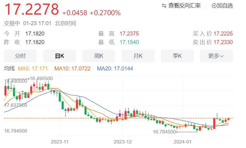 美元/墨西哥比索价格走势分析:上涨至17.22附近
