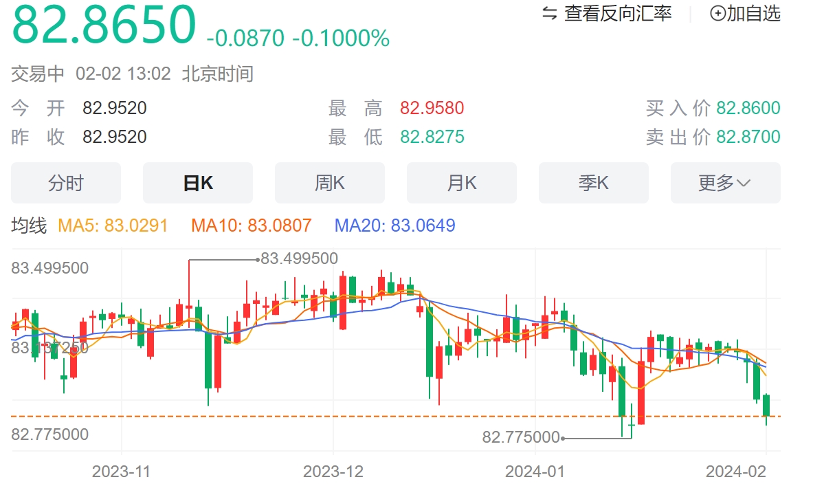 从好的方面来看,突破支撑转阻力位83.00将反弹至下降趋势通道的上边界,并达到1月20日的高点83.20。任何后续买盘都可能将其上涨势头扩大至1月2日的高点83.35。