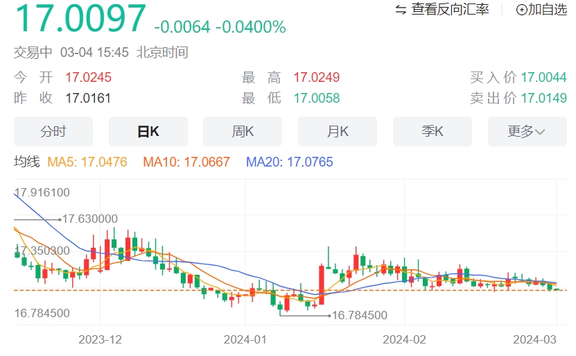 周一欧盘,美元/墨西哥比索连续第三个交易日扩大跌幅,在欧洲早盘时段走低至17.00附近。 美元(USD)继上周五收跌后,本周一继续收跌。 美元指数(DXY)面临下行压力,主因是美国2 月制造业数据不乐观。