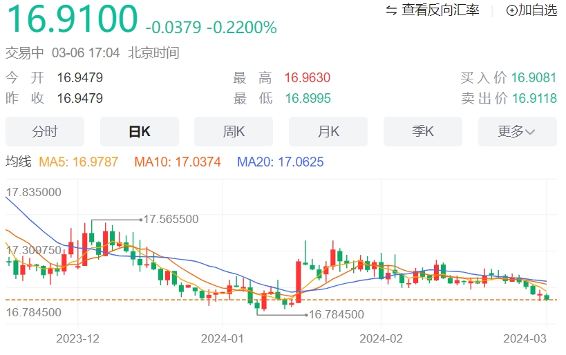 美元/墨西哥比索因风险偏好跌至16.90附近