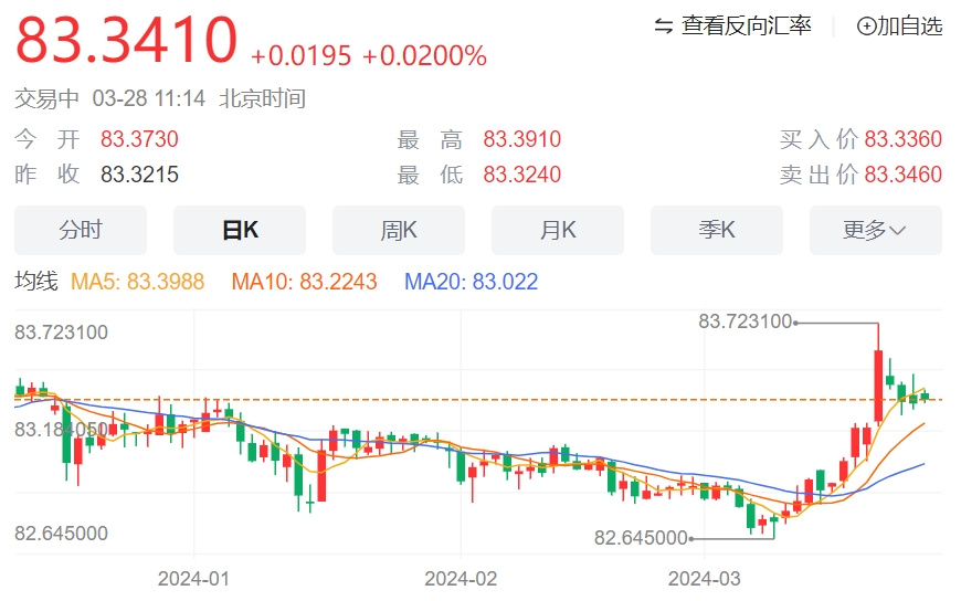 印度卢比当天交易走软。美元/印度卢比自上周升破长达数月的下降趋势通道以来,在长期内延续了上升趋势。短期内,美元/印度卢比仍高于日线图上的关键100日指数移动平均线(EMA),14日相对强弱指数保持在50中线上方。该货币对的这种上升势头表明支撑位更有可能守住而不是突破,并且还有更多进一步上行的空间。