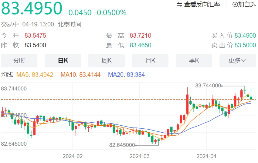 美元/印度卢比第一个上行障碍将出现在历史高点 83.72 附近。 如果明确突破该水平,将为通往84.00心理整数位铺平道路。 另一方面,4月18日低点83.50是初步支撑位,然后是4月12日的低点83.30。 如果美元/印度卢比下行跌破 100 天指数移动均线(83.12),则可能引发急剧下跌。