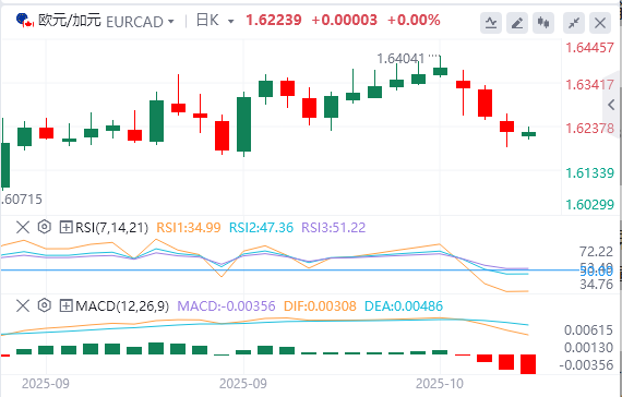 该交叉盘的第一个上行目标位于10月8日的高点1.6266。如果涨幅扩大,可能会反弹至9月24日的高点1.6350。再往北,下一个障碍位于1.6395-1.6400区域,代表布林带和心理水平的上限。