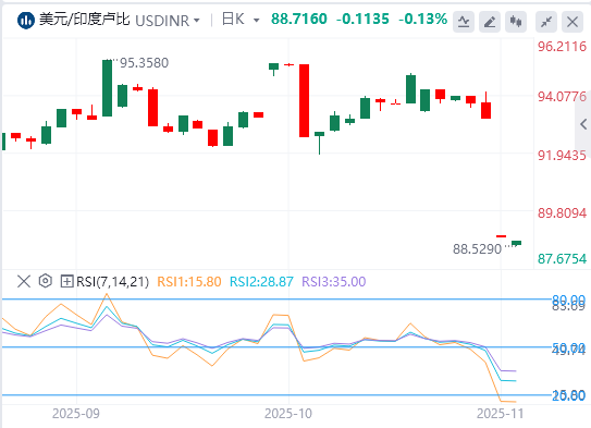 周二美元/印度卢比大幅下跌至88.50附近。该货币对测试20日指数移动平均线(EMA),该平均线交投于88.54附近。