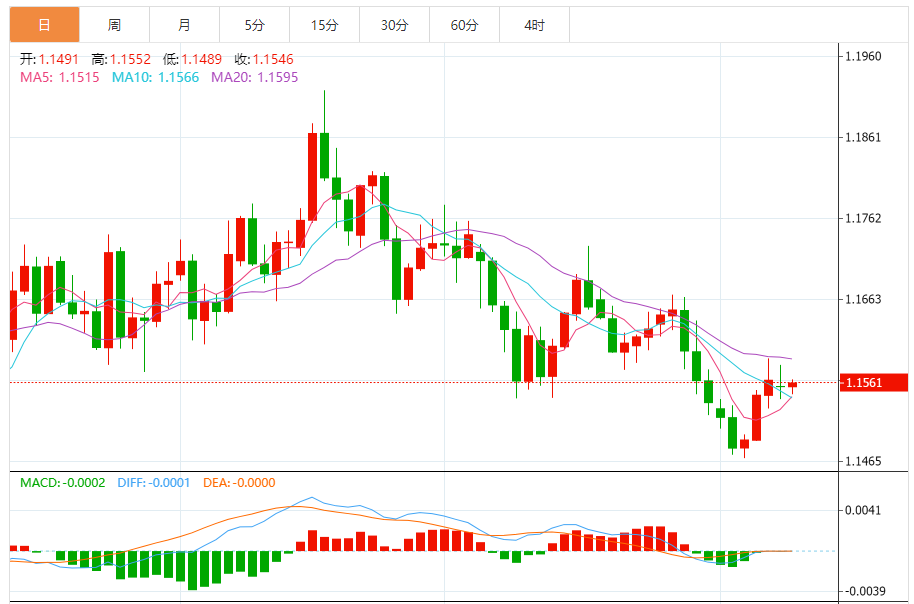 支撑位:1.1552 1.1555 1.1559