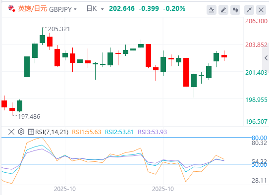 从更广泛的角度来看,该货币对在近期高点附近保持稳定,日元疲软阻止英镑进一步下跌。美国政府重新开放的希望以及日本首相高市向日本央行(BOJ)施压反对12月加息的言论导致风险偏好上升,使日元在周二处于不利地位。
