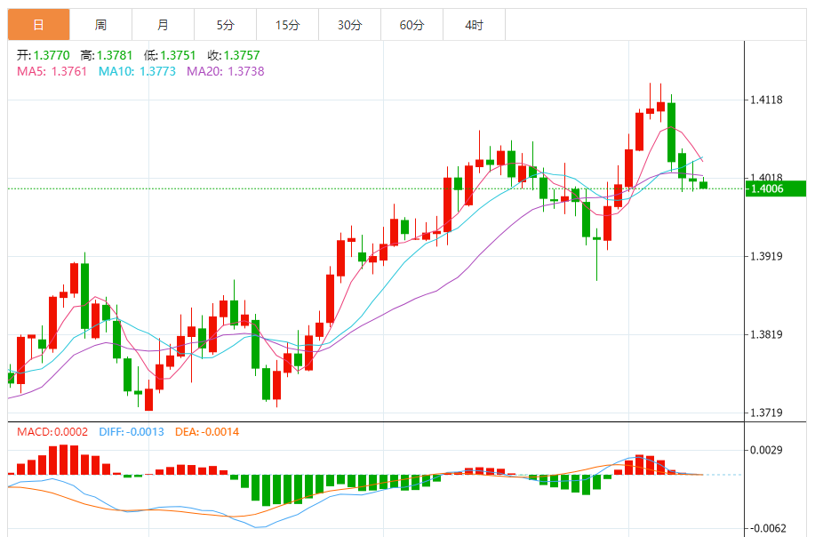 周三,美元/加元徘徊于1.4009下方,现交投于1.4006附近,跌幅0.06%。