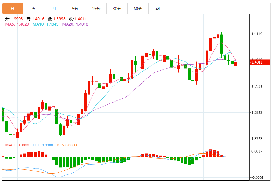 周四,美元/加元徘徊于1.4012下方,现交投于1.4010附近,涨幅0.04%。