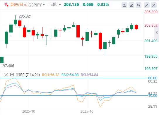 英镑/日元延续周四涨幅,小幅上涨0.22%,与20日简单移动平均线(SMA)202.48保持距离,该均线被视为该货币对的第一个支撑区域。