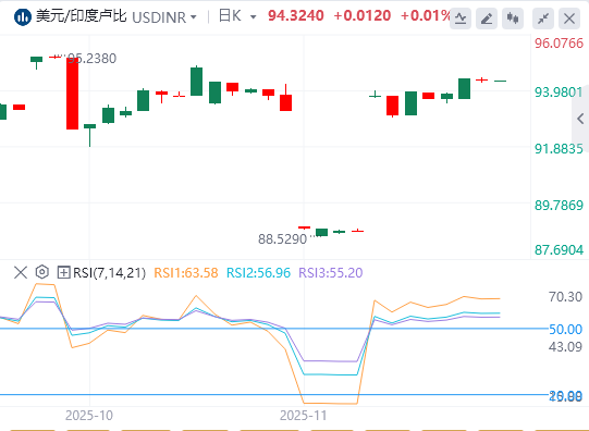美元/印度卢比汇率周三开盘时跌至接近88.60。该货币对调整范围延伸至接近20日指数移动平均线(EMA),交易约88.70。
