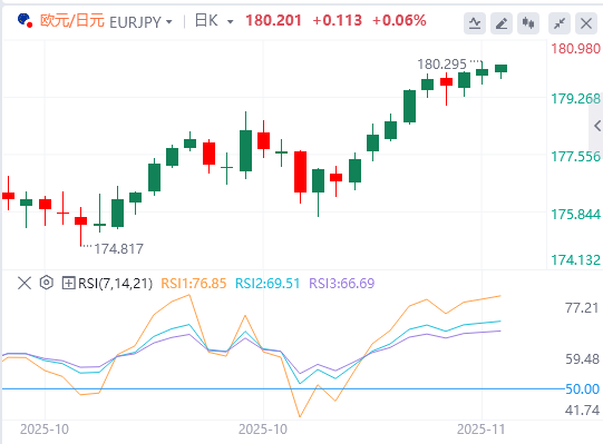 向上方面,若进一步突破180.29的历史高点,与上升通道的上阻力相符,欧元/日元交叉将接近心理水平181.00。