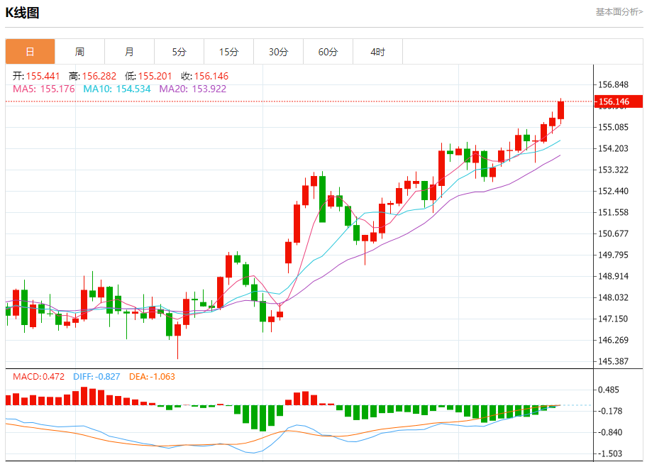 支撑位:155.20 154.85 154.60