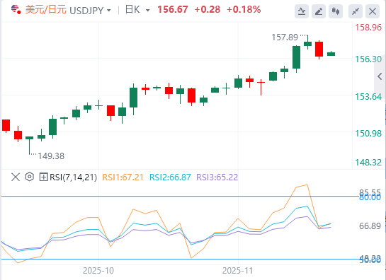 与此同时,日本银行行长上田一雄周五在议会表示,日元走弱可能会推高进口成本和更广泛的价格。此外,日本统计局报告称,通胀在日本日银2%目标以上依然存在,这让人们对近期加息仍有希望。路透社的一项民调显示,微弱多数经济学家预计日本央行将在12月将利率提高至0.75%。