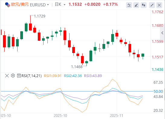 20期简单移动平均线(SMA)低于50、100和200期SMA,突显出看跌偏向。较长的SMA也向下倾斜,该货币对保持在所有均线下方,卖方掌控局面。相对强弱指数(RSI)为41.7,位于中线以下,显示出动能疲弱,而适度的回升暗示稳定压力而非趋势转变。