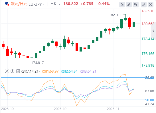 在欧洲方面,尽管宏观经济数据参差不齐,欧元(EUR)的风险偏好略有改善。德国IFO商业环境指数在11月降至88.1,低于预期,但欧元仍受到欧洲央行(ECB)谨慎但警惕的基调支撑。