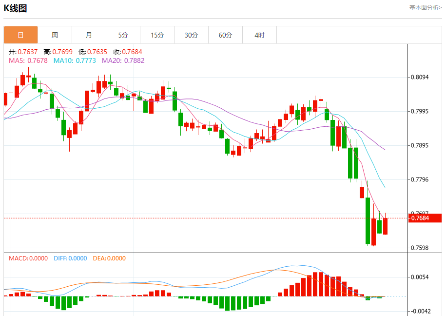支撑位:0.7650 0.7635 0.7620