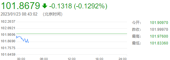截至目前,美元指数窄幅震荡,美元指数震荡微跌,目前交投于101.87附近,美元指数上周五下跌0.07%,至收报101.985,1月迄今已下跌约1.5%,整体仍处于弱势,后市仍有进一步下探风险。在2022年最后三个月,美元下跌近8%,当时投资者开始考虑美联储放慢加息步伐的可能性提高。