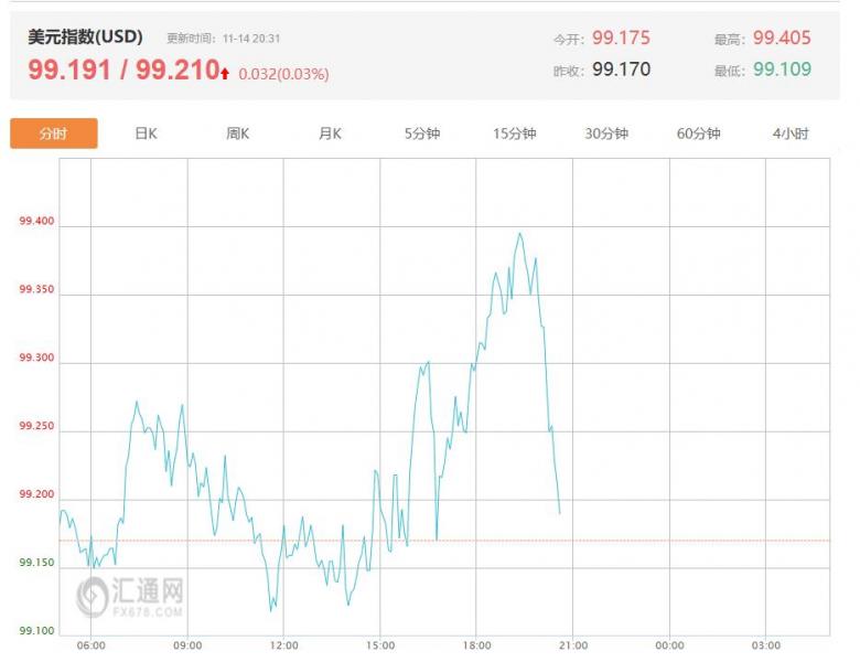截至目前,美元指数上涨0.03%,报99.210。