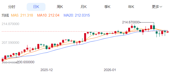 周五,英镑/日元上涨0.10%至211.64附近。 英镑方面,英国央行的偏鹰派政策立场成为支撑英镑走强的核心动力,市场对其降息预期持续延后。当前英国央行维持3.75%的限制性基准利率不变,此前市场押注的上半年降息计划已推迟至年中,2月降息的预期基本消散。尽管英国面临劳动力市场放缓的压力,但通胀粘性仍制约宽松