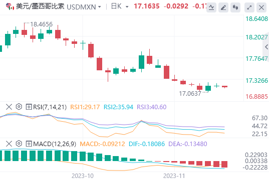 此外,路透社报道的初步预测显示,10月份墨西哥经济同比增长2.9%。展望未来,周四的预测显示11月份前半个月的通胀率将有所上升,但核心通胀率预计将略有下降。此外,周五将公布国内生产总值年率,预计第三季度将出现萎缩。