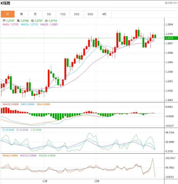 英镑/美元连续第三个交易日扩大涨幅,距离突破上方阻力位 1.2765 已近在咫尺。在看涨动力的推动下,英镑/美元可能很快突破这一技术障碍,为可能重新测试略高于1.2800关口的12月高点铺平道路。持续走强将吸引市场关注心理关口 1.3000。