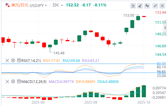 与此同时,以色列与哈马斯就和平协议第一阶段达成的协议提振了全球风险情绪,并有助于推动资金从避险货币日元流出。另一方面,美元扭转了盘中跌势,回到周三触及的8月下旬以来的最高水平,这反过来又推动美元/日元突破153.00关口。这在更大程度上掩盖了日本央行今年再次加息的预期,并表明日元阻力最小的路径是下行。