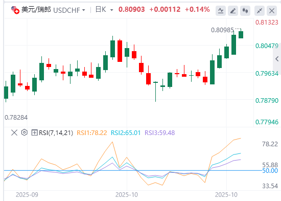 在美联储(Fed)鹰派倾向的背景下,追踪美元兑一篮子货币的美元指数(DXY)升至三个多月高点。事实上,美联储主席杰罗姆·鲍威尔反驳了市场对12月再次降息的预期。这有助于抵消对美国政府长期关门带来的经济风险的担忧,并继续成为美元带来的推动力,进而推动美元/瑞郎走高。