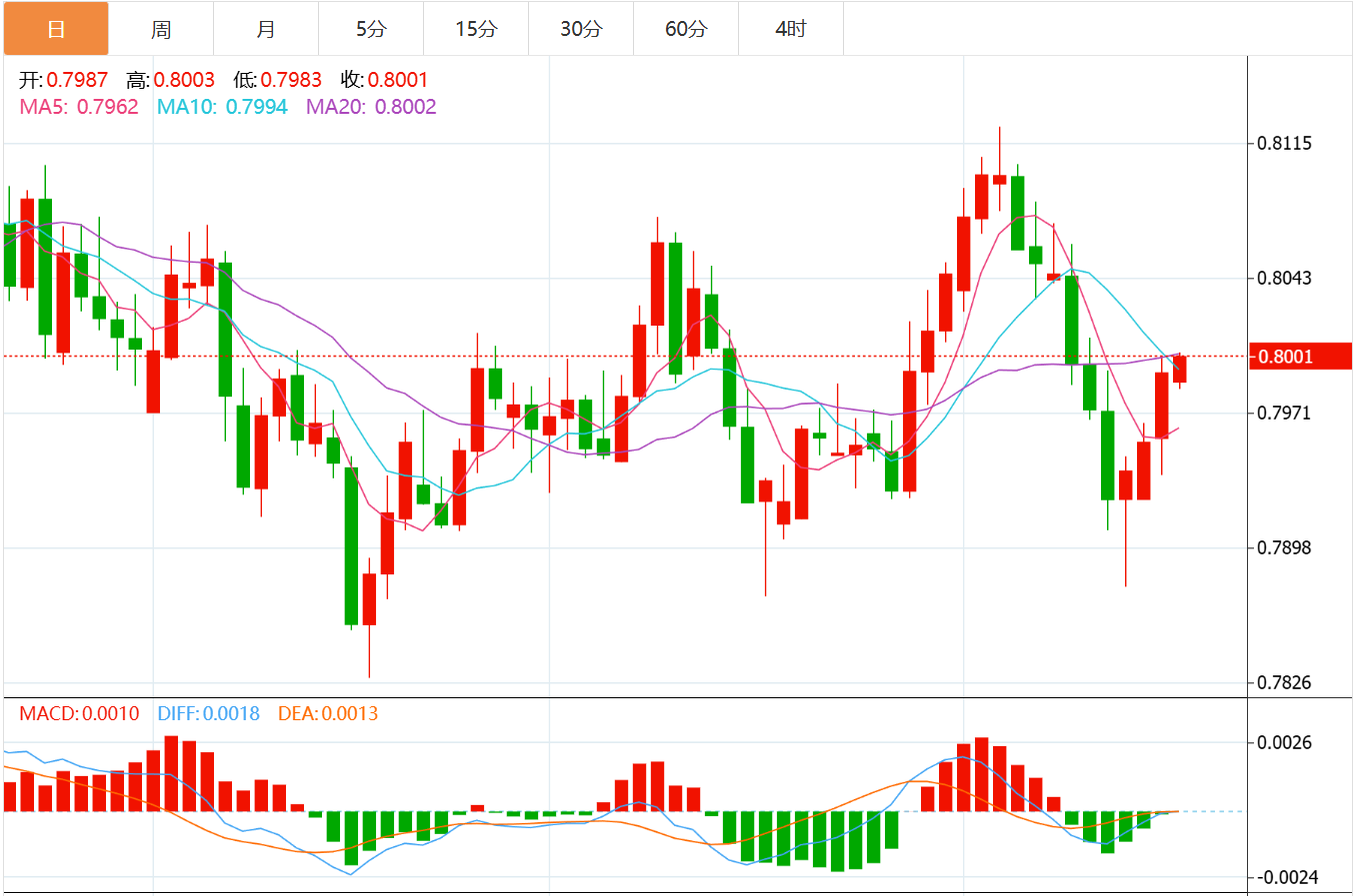 瑞士法郎(CHF)在周二对美元(USD)走弱,美元/瑞郎连续第三天上涨,交易者消化最新一批美国经济数据。 截至发稿时,该货币对交易于0.7997附近,从日内低点0.7937反弹,美元保持坚挺。