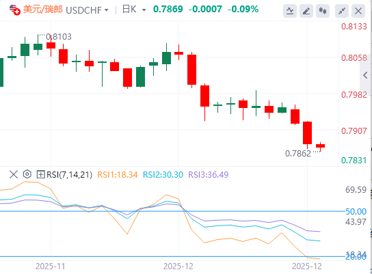 周二,瑞士ZEW调查——预期指数从11月十个月高点的12.2降至12.2,而当前状况指数则从-4.9飙升至16.6。与此同时,瑞银分析师自9月以来对瑞士长期前景更加乐观,五年增长预测攀升至2024年底以来的最高水平。调查还显示瑞士法郎(CHF)持续强劲。