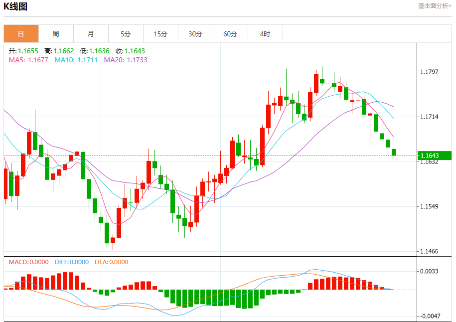 周四,欧元(EUR)兑美元(USD)小幅走低,欧元/美元延续下滑,因美元在美国每周劳动力市场数据发布后继续上涨。 截至发稿时,欧元/美元交投于1.1662,连续第五天处于弱势。