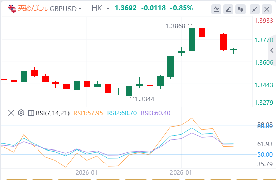 上涨方面,1月高点1.3869仍将成为多头的重要障碍。向下看,20日均线将作为主要支撑区。