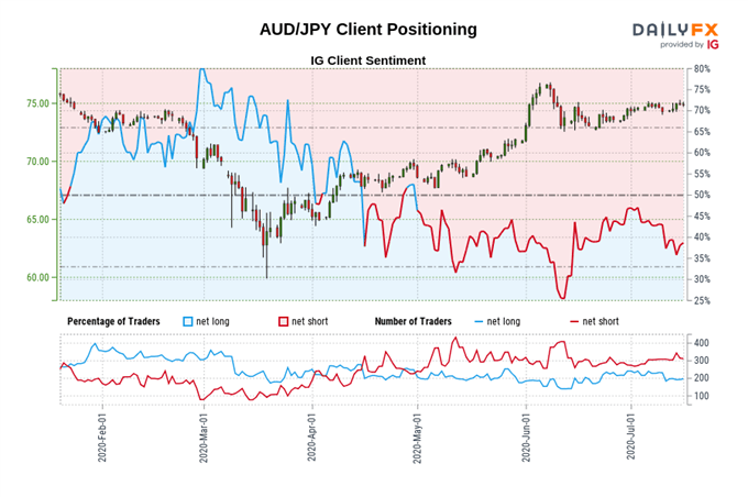 我们通常将散户情绪指数作为反向指标,散户为净空头(散户看空)暗示澳元/日元可能继续上涨。