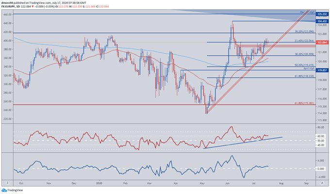 此外,RSI指标升破60进入看涨区域也可能增加买盘压力,若该指标能大涨进入超买区域则后续或有望促使欧元/日元上行测试124水平。