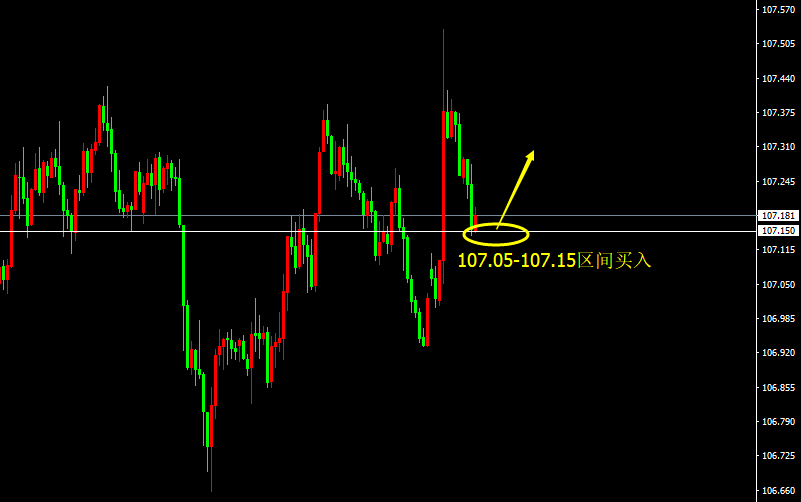 107.05-107.15区间买入,止损20点,目标107.35、107.55、107.75。