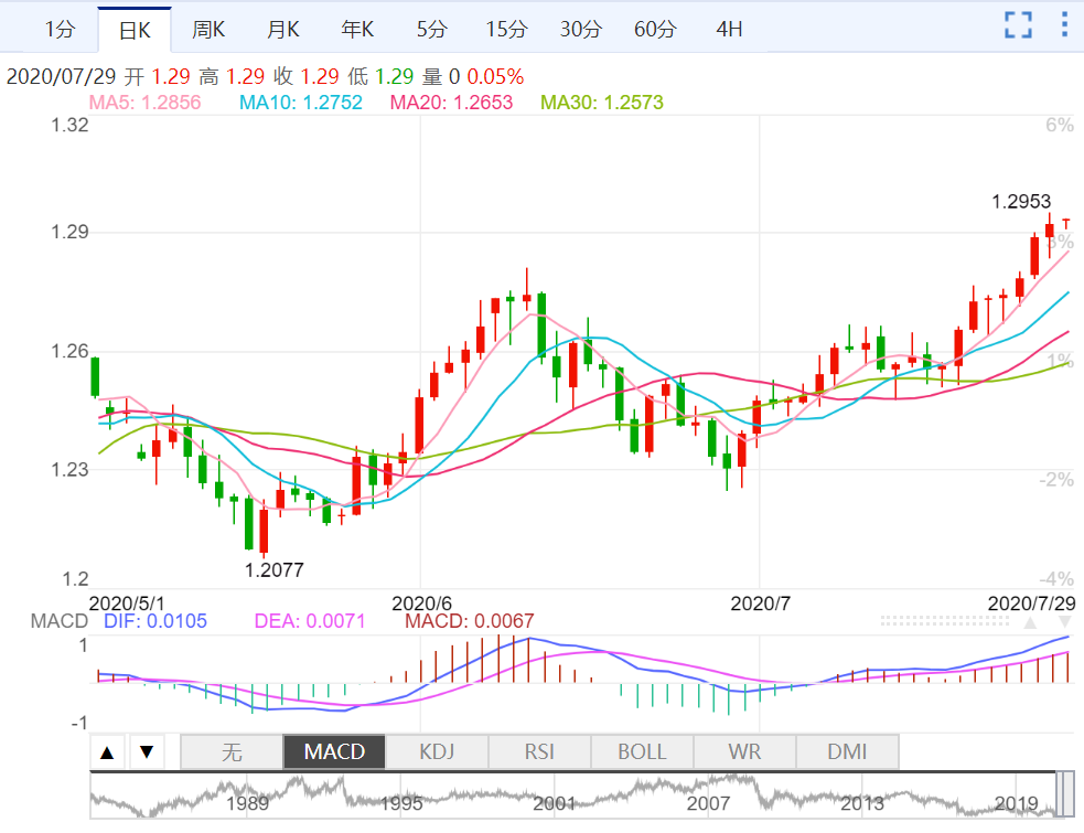 英镑:英镑/美元连续第四日上涨,收报1.2930,涨幅0.52%。技术面上,该货币对的枢轴点位于1.2907,汇价上行的初步阻力位于1.2976,进一步阻力位于1.3022,关键阻力位于1.3091;汇价下行的初步支撑位于1.2862,进一步支撑位于1.2792,更关键支撑位于1.2747。基本面上,英国经济复苏似乎步伐较为稳健,疫苗研制消息也较为积极,另一方面英欧贸易谈判处于僵持状态中,双方很难在夏季达成协议。英镑在利好和利空消息影响下出现震荡走势,但在美联储决议即将召开之际多头稍占上风。由于7月美联储决议存在一定不确定性,预计多头此时会保持谨慎,甚至回避,这会短线令英镑走弱,并在消息面兑现后,英镑会波动加大。