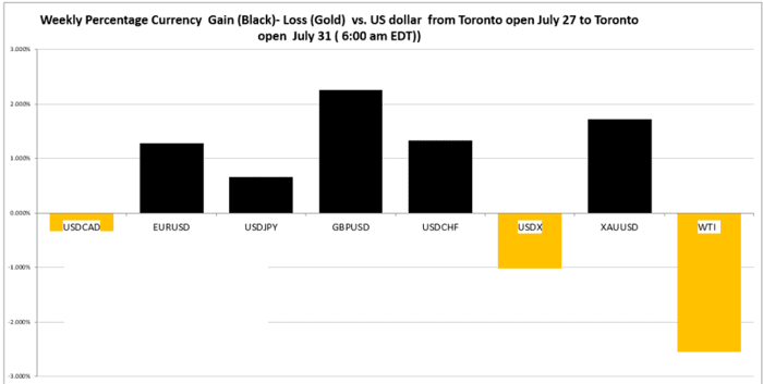 除了兑加元的汇率,美元兑10国集团主要货币的汇率将在本周以下跌结束。