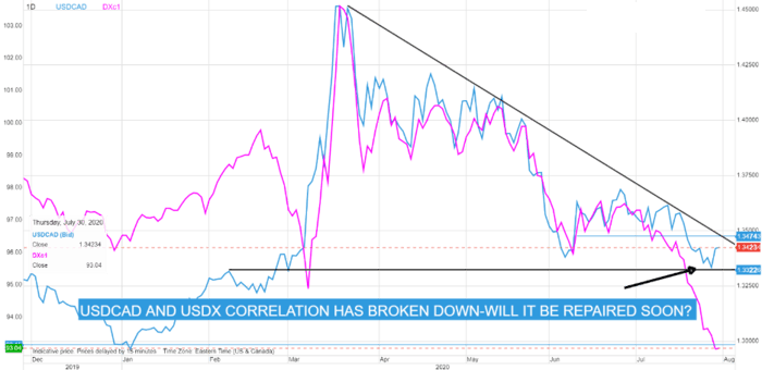 美元/加元技术面:美元/加元技术面看跌。从3月份开始的下降趋势线在1.3510以下保持完好。自3月以来,1.3310的支撑位遏制了下行趋势。跌破1.3310就意味着可能大幅下跌至1.2950。然而,美元指数的价格走势给它带来了不确定性。在过去的五个月里,美元/加元和美元指数一直高度相关,但这种关系在过去10天里破裂了。美元指数持续下滑,但美元/加元没有跟随。图表显示,随着美元/加元的下跌,这种相关性可能会恢复。