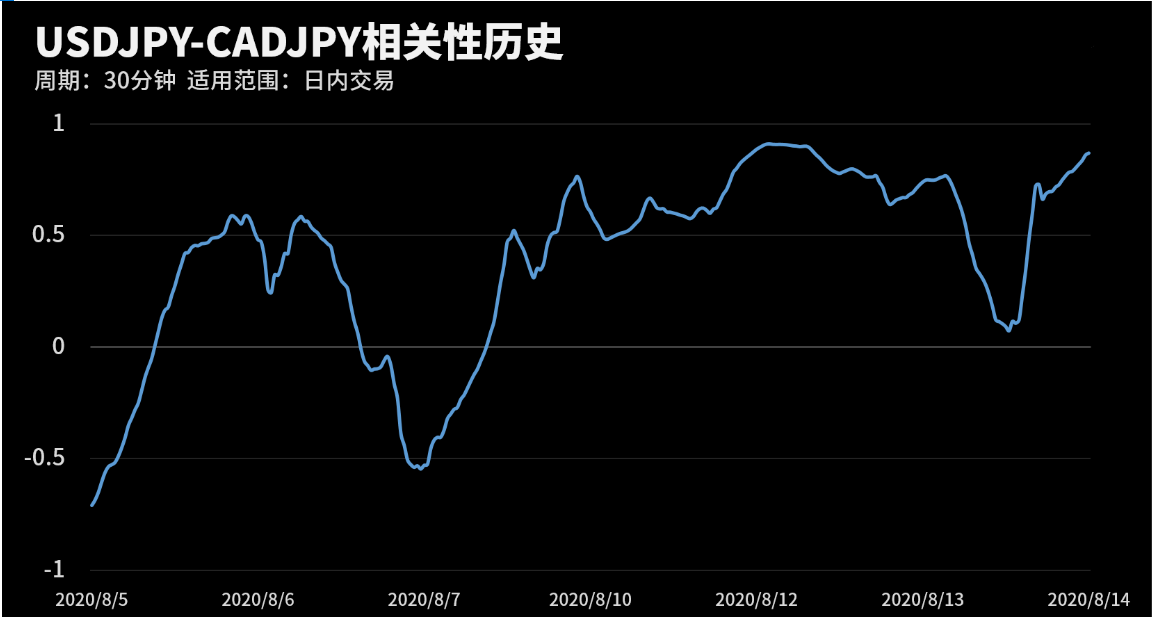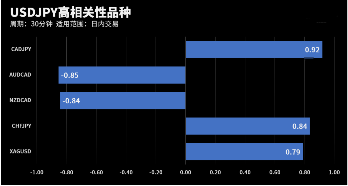 根据外汇相关性实时追踪,USDJPY和CADJPY在30分钟周期下相关系数达到0.92。