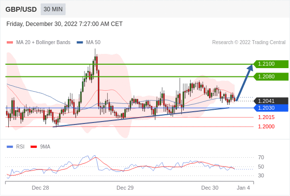 在 1.2030 之上,看涨,目标价位为 1.2080 ,然后为 1.2100 。 在 1.2030 下,看空,目标价位定在 1.2015 ,然后为 1.2000。