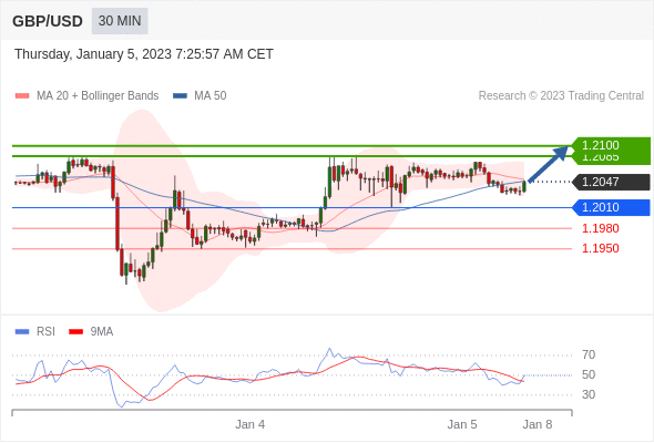 在 1.2010 之上,看涨,目标价位为 1.2085 ,然后为 1.2100 。在 1.2010 下,看空,目标价位定在 1.1980 ,然后为 1.1950。
