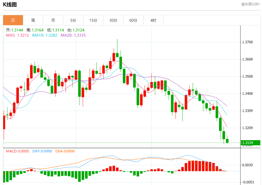 汇价高见1.3164,低见1.3114。上一交易日,汇价收于1.3148。