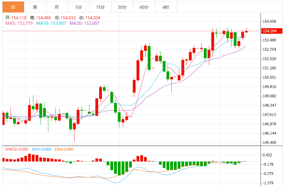技术分析:美元/日元需要突破154.45-154.50的关键障碍