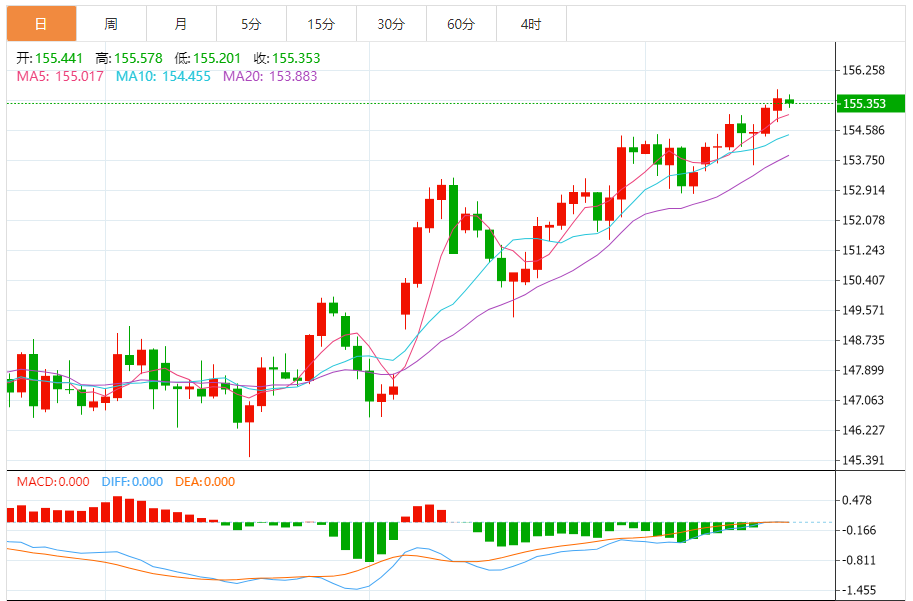 周三(11月19日),美元/日元下跌155.378,暂报155.350,跌幅0.08%。