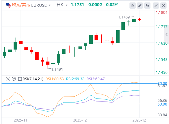14天相对强弱指数(RSI)位于70.22,接近超买水平,显示上行空间被拉长。