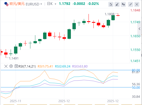 下行方面,9日EMA均线1.1745与通道下轨1.1740构成第一道支撑防线。若跌破该区域,短期动能将转弱,50日均线1.1660附近面临测试风险;进一步下破则可能回踩12月1日三周低点1.1589,形成技术面"假突破"警示。
