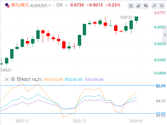澳元/美元可能在0.6727触及即时关隘,这是自2024年10月以来的最高水平,于12月29日达到。进一步上涨可能使该货币对接近上升通道上界,约0.6820。