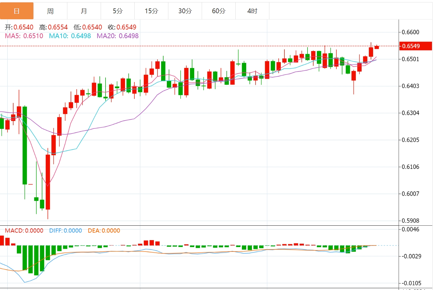 技术分析:澳元维持在0.6900以上,接近上升通道的上边界