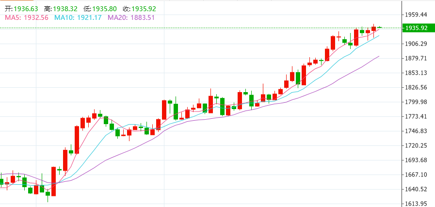 在美元疲软的同时,现货黄金持续走高,盘中一度涨至1942.41美元/盎司,连续4天刷新去年4月份以来的9个月高位,收涨0.31%,报1937.31美元/盎司,为连续7个交易日收于1900美元上方;现货白银一度跌至23.19美元/盎司,但是在里奇蒙德联储制造业指数公布之后持续拉升,收涨0.89%,报23.67美元/盎司。