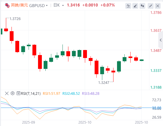英镑:截至发稿,英镑/美元徘徊在1.3416附近。英国9月份CPI通胀数据定于周三公布。预计截至9月的一年中,英国CPI通胀将略有加速。然而,加息幅度不太可能大到足以引发英国央行(BoE)当前利率目标时间表的任何重大变化。技术面上,如果英镑/美元跌破1.3400,它将获得额外的下行动力,并向50均线1.3372移动。